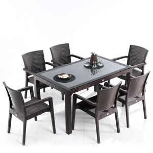 2. Rattan Effect Garden Furniture Set ? Glass Top Dining Table 6 Stackable Chairs-Hazari_imp-2200
